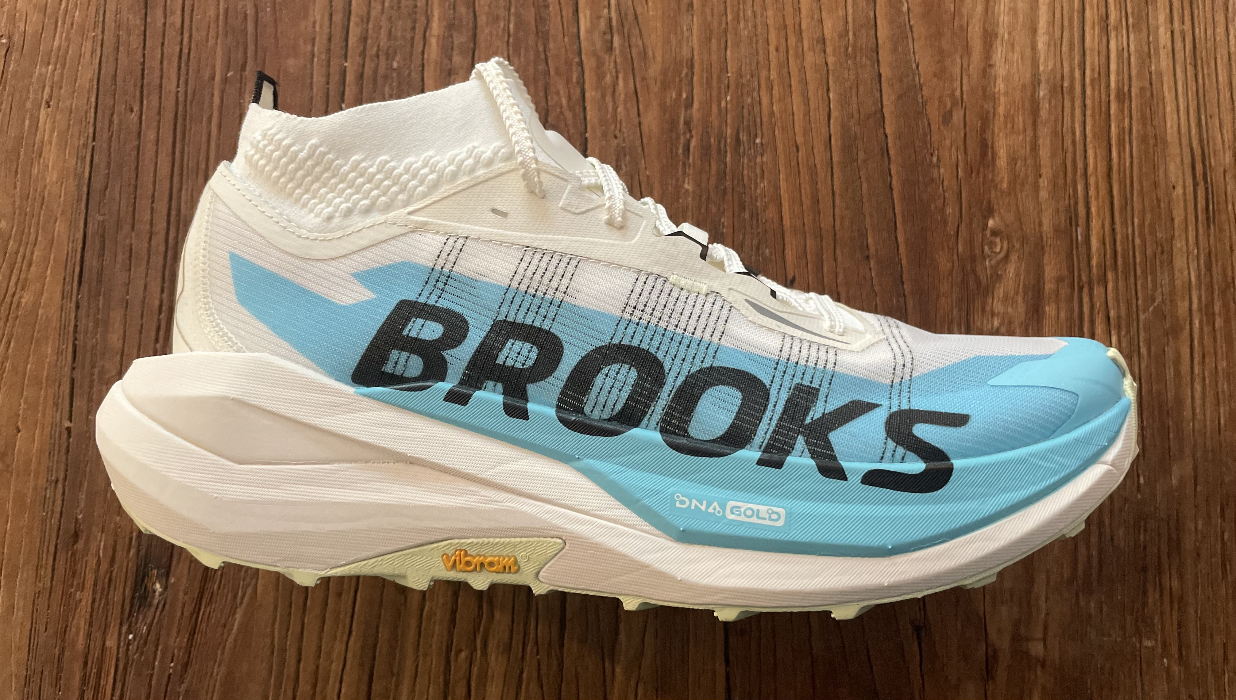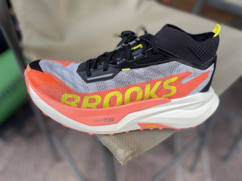 Brooks tape un gros coup en proposant un tout nouveau modèle qui possède toutes les caratéristiques des « super shoes » de trail qui sont sur le marché depuis quelques années.