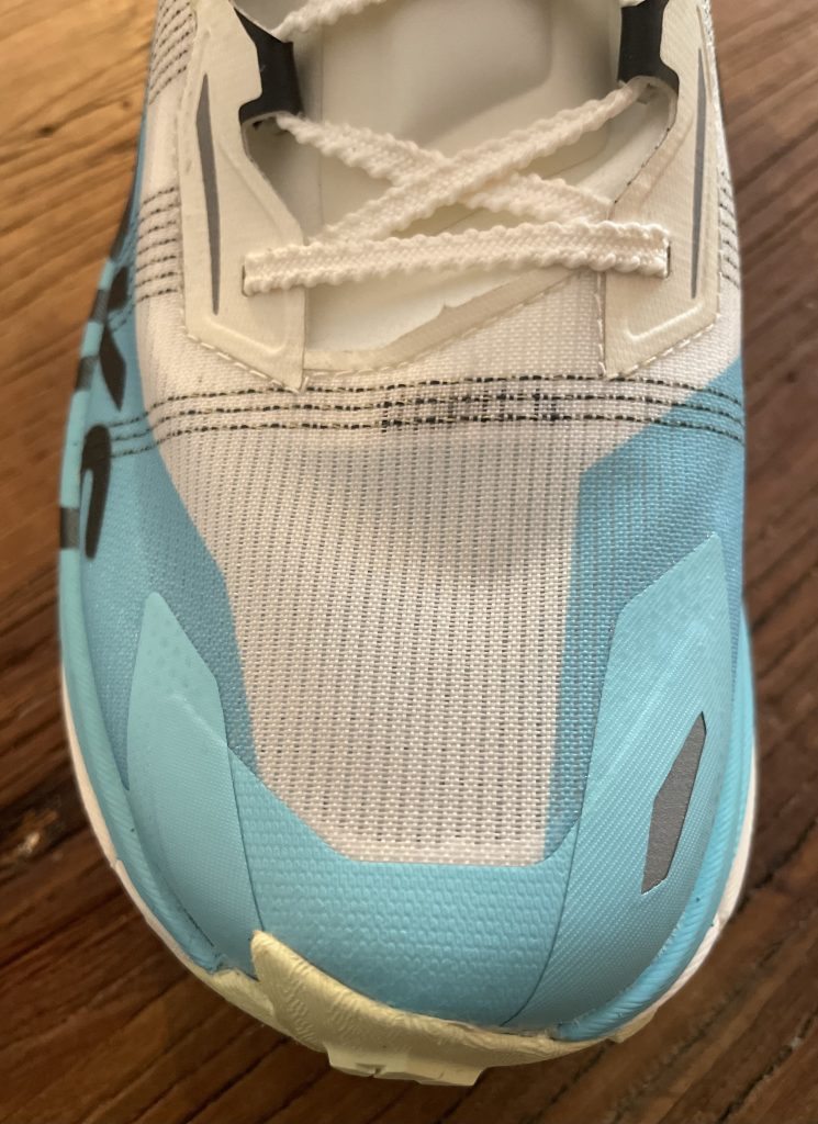 Le Matryx est utilisé sur l’ensemble de la tige. Et il y a aussi quelques renforts TPU sur la chaussure. Sans oublier que la respirabilité est excellente. Après des passages à gué, le pied sèche rapidement.