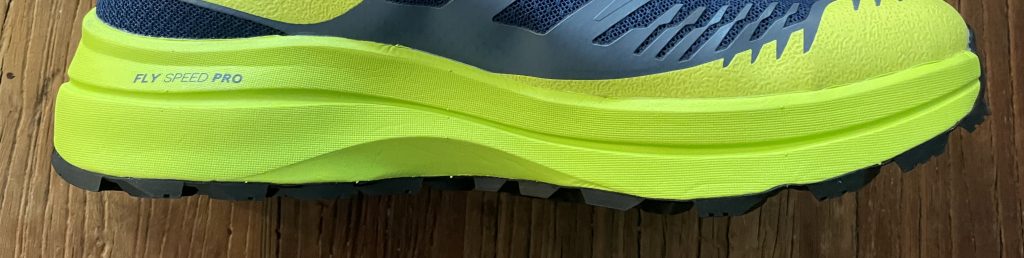 La semelle intermédiaire Fly speed Pro apporte énormément de confort. L’ amorti est optimal. Et avec son épaisseur loin d’être excessive. Les sensations au sol sont bonnes. Et le retour d’énergie l’est tout autant. J’ai l’impression que les semelles intermédiaires à base d’azote infusé sont ce qui se fait de mieux en trail à l’heure actuelle. Il me semble que cela apporte le meilleur combo amorti/réactivité.