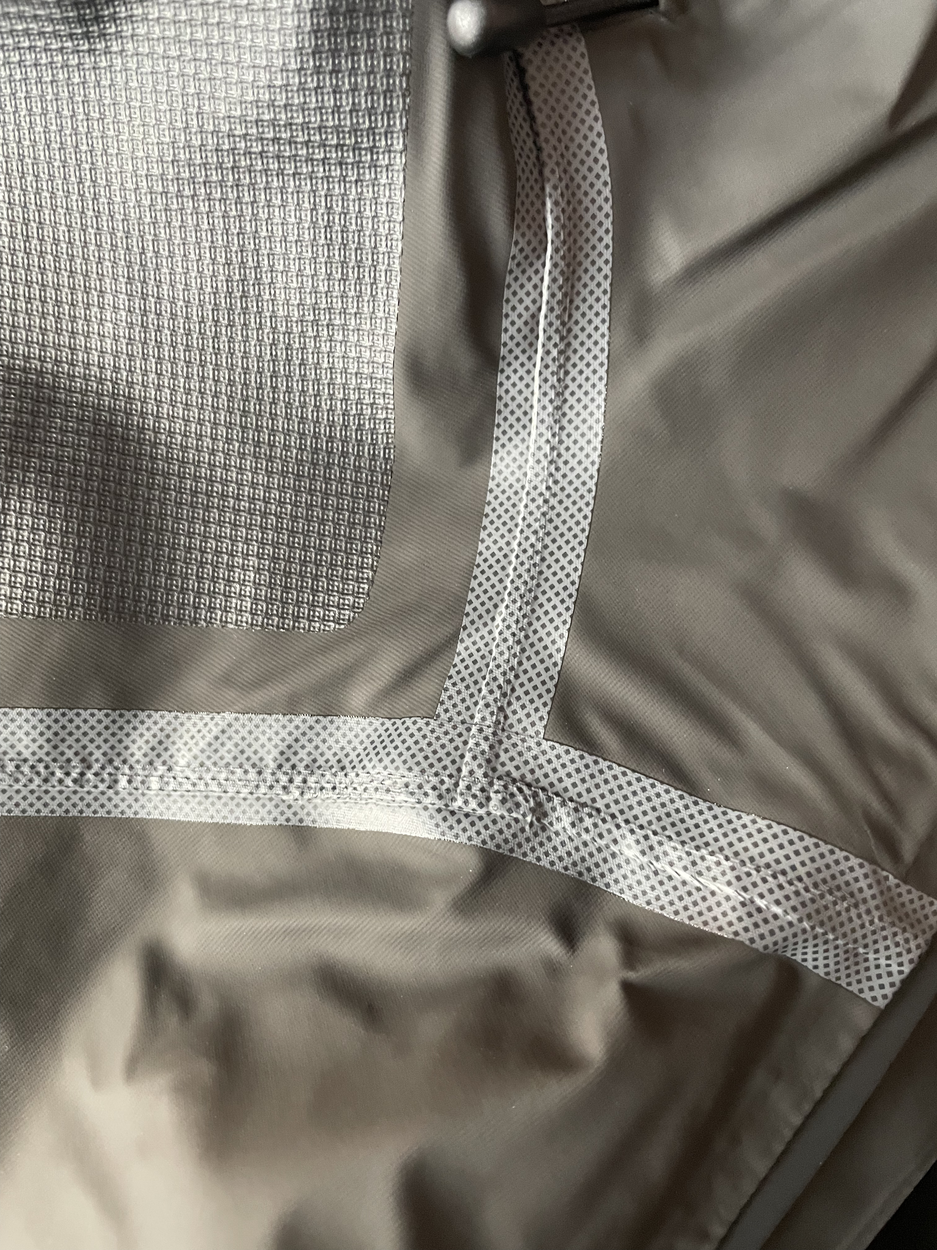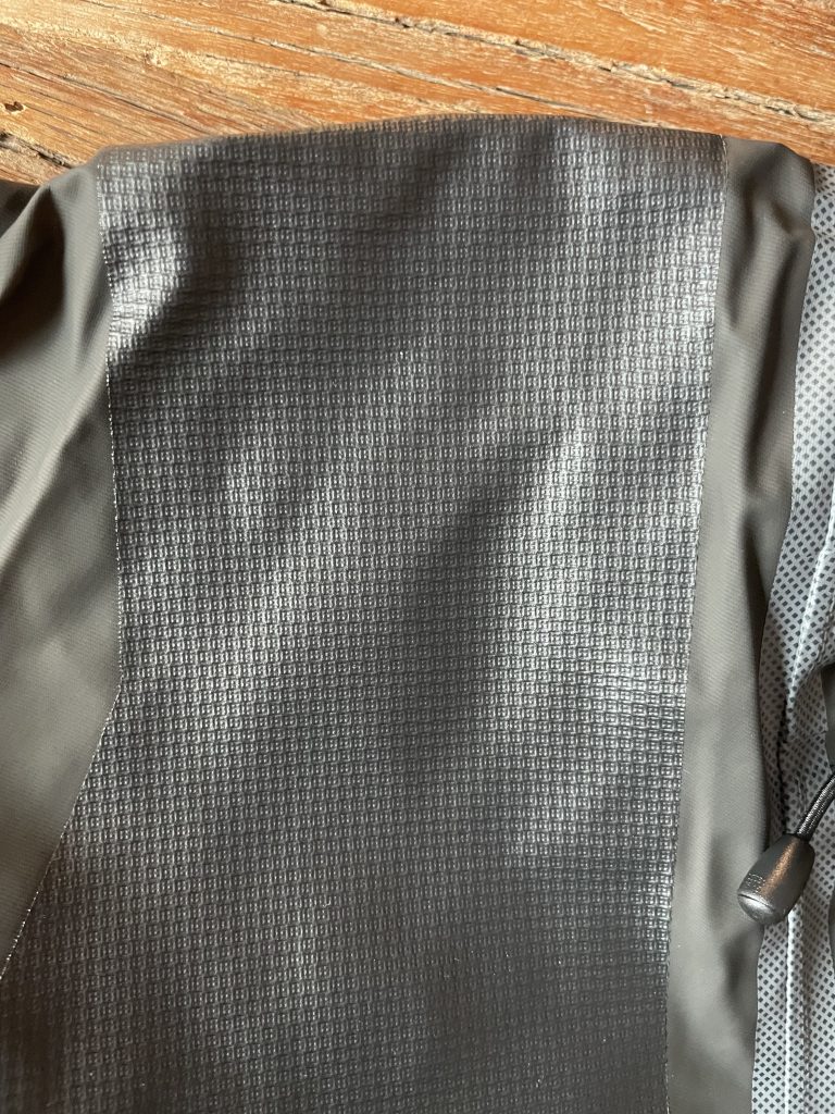 La membrane en nylon recyclé est très agréable au toucher. Pas d’effet cartonné à mentionner. Le tissu est assez épais et agréable au toucher.
